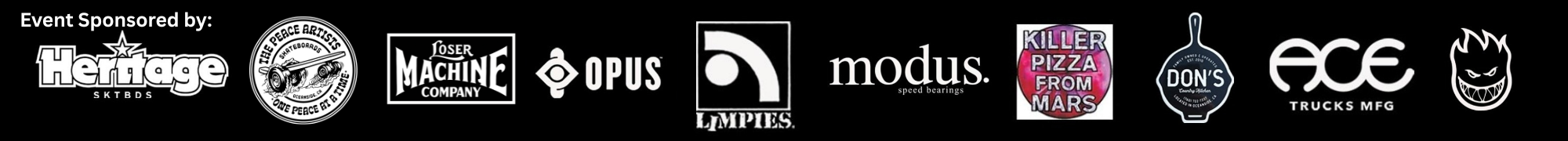 - SPONSORED BY: Heritage Skateboards, The Peace Artists, LOSER MACHINE, Opus, Limpies, Modus, Don's Country Kitchen, Spitfire, Ace Trucks, Killer Pizza From Mars and Fat Joe's Family Rest.